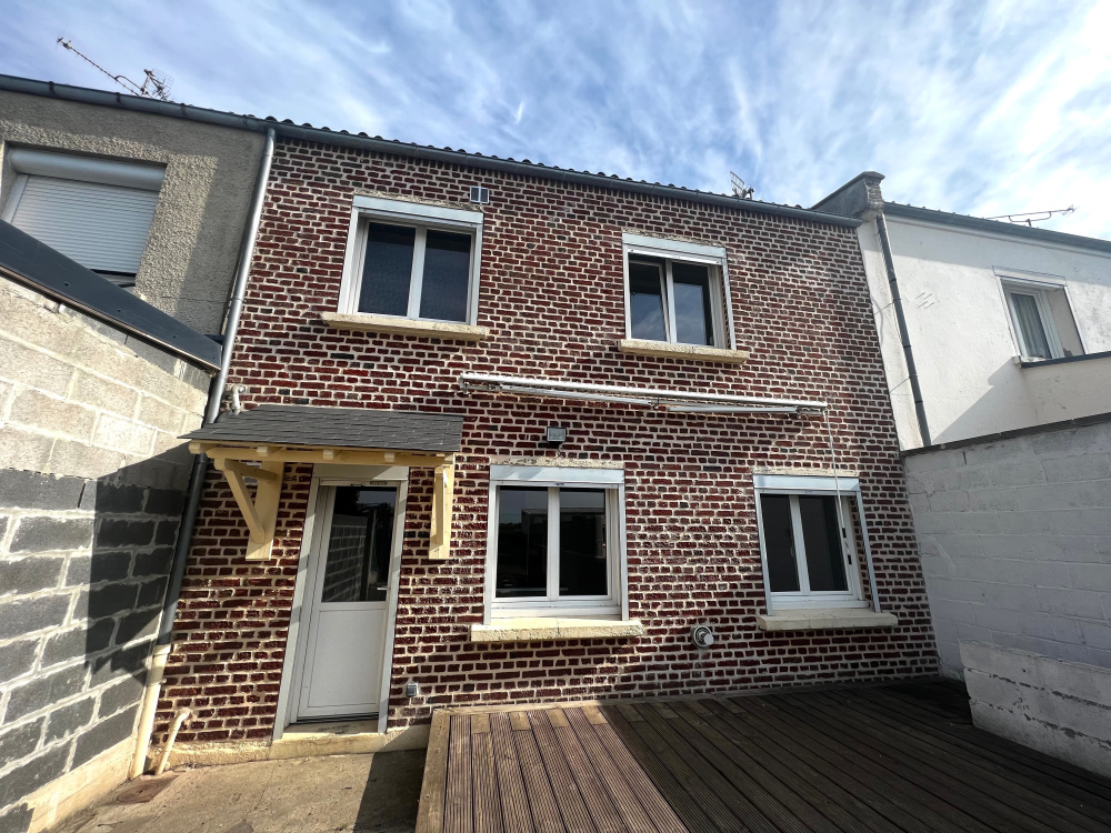 ExclusifCambrai (59400)CAMBRAI - Maison familiale avec 3 chambresCAMBRAI Maison familiale offrant au RDC entrée, cuisine meublée et équipée ouverte sur salon - salle à manger, WC. A l'étage, palier desservant 3 chambres, salle de douches. Cave. Terrasse et jardin. Accès possible sur l'arrière du terrain pour véhicules. Menuiseries PVC double vitrage, électricité récente... Chauffage par convecteur GAZ + chauffage électrique. PROCHE ZONE COMMERCIALE ! Une exclusivité Simon Lacord immobilier !Prixdu bien109 900 €réf : 1617En savoir plussur ce bien