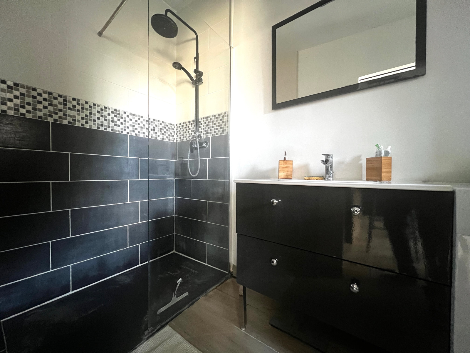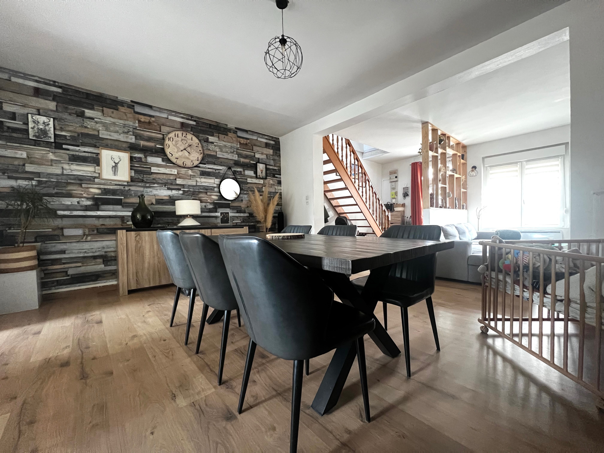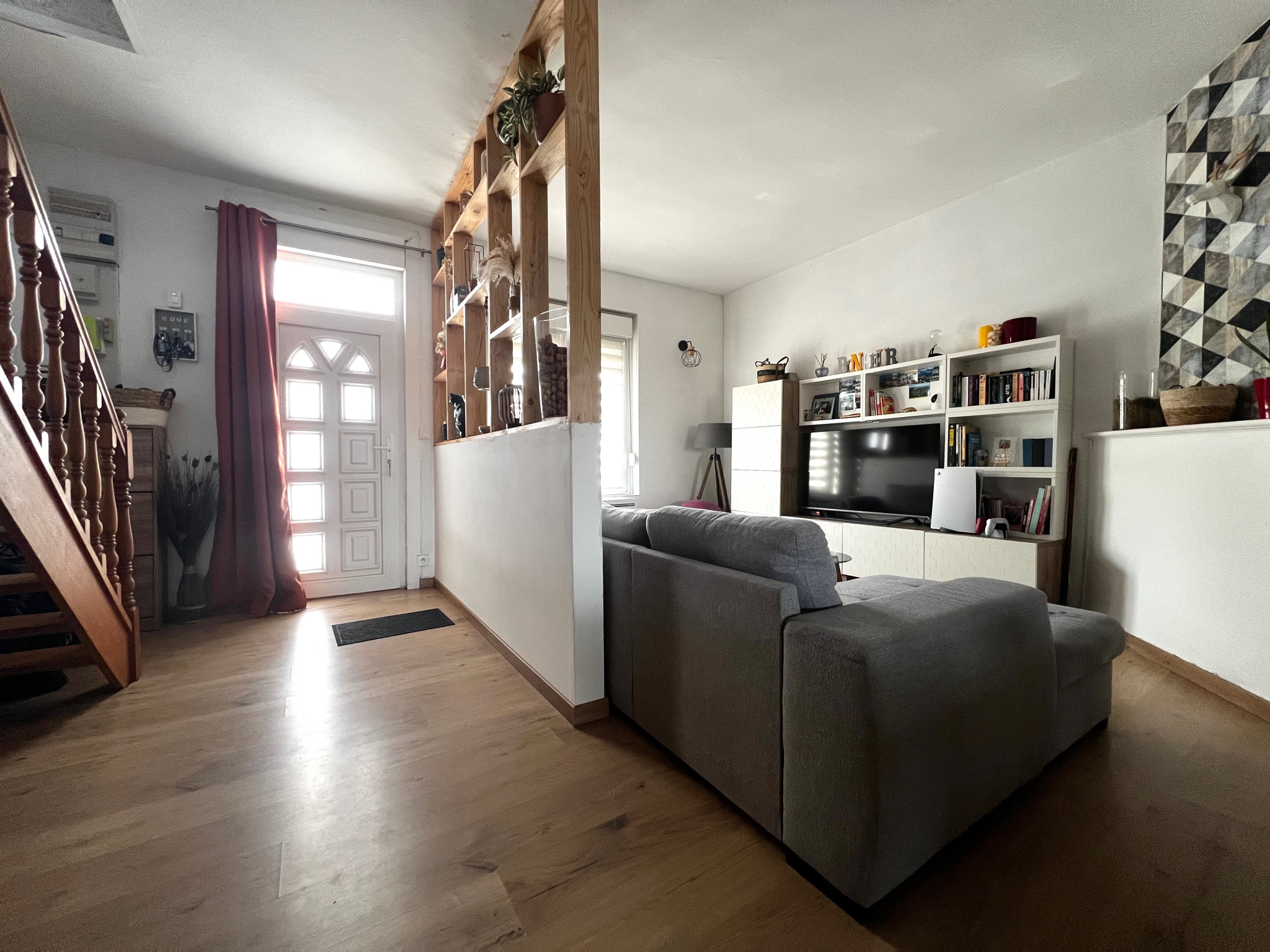 Maison de village semi individuelle d'environ 100 m2 offrant au RDC entrée, cuisine meublée et équipée avec espace repas ouverte sur salon - salle à manger, salle de douches avec WC.
