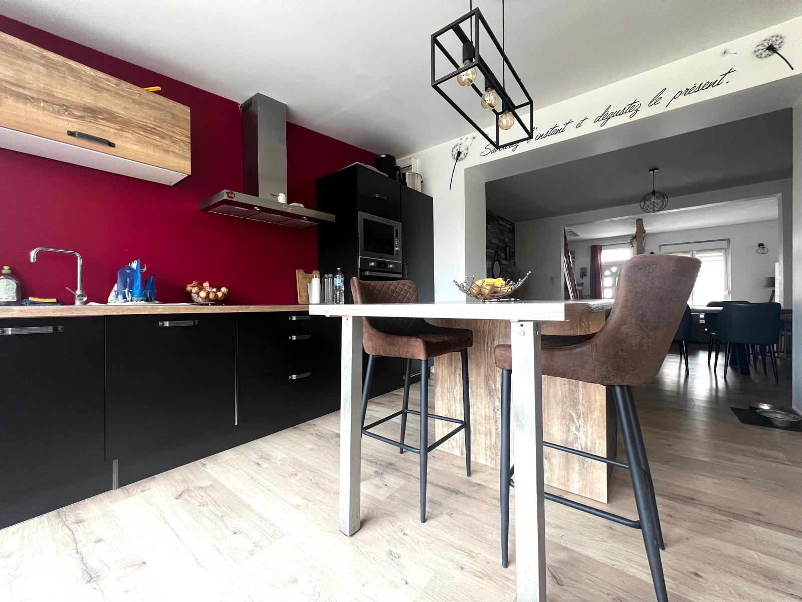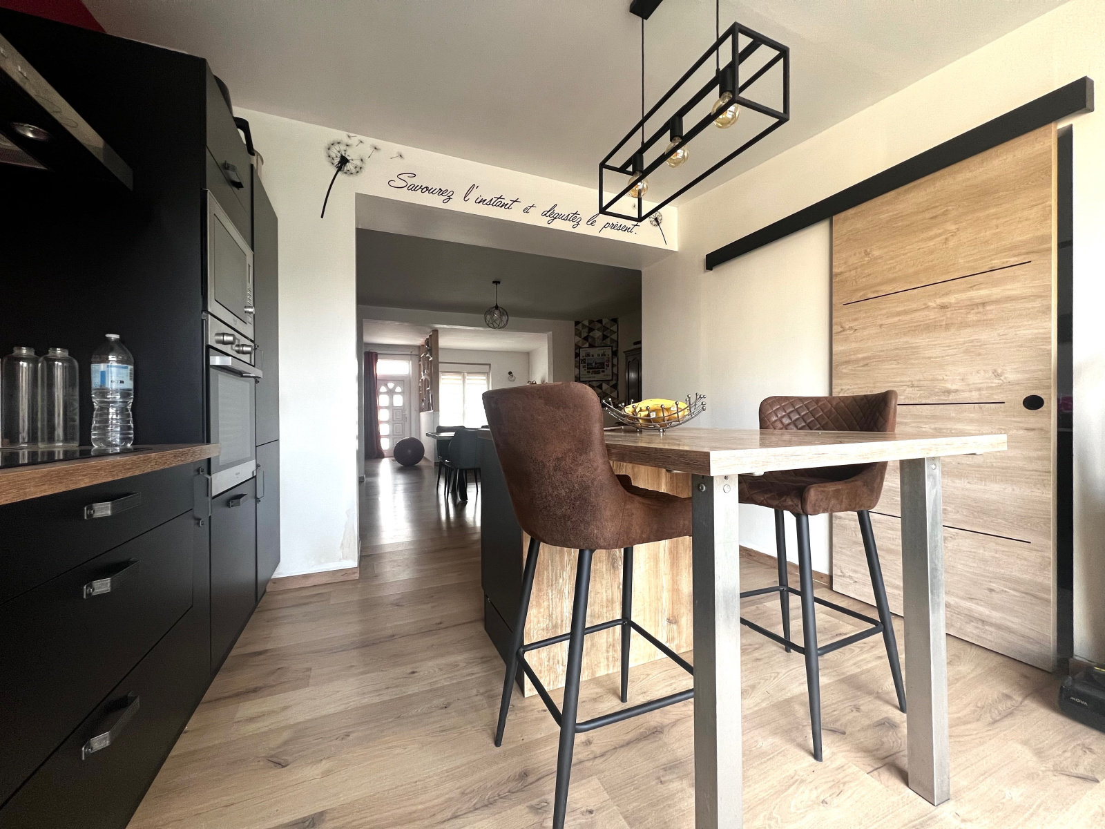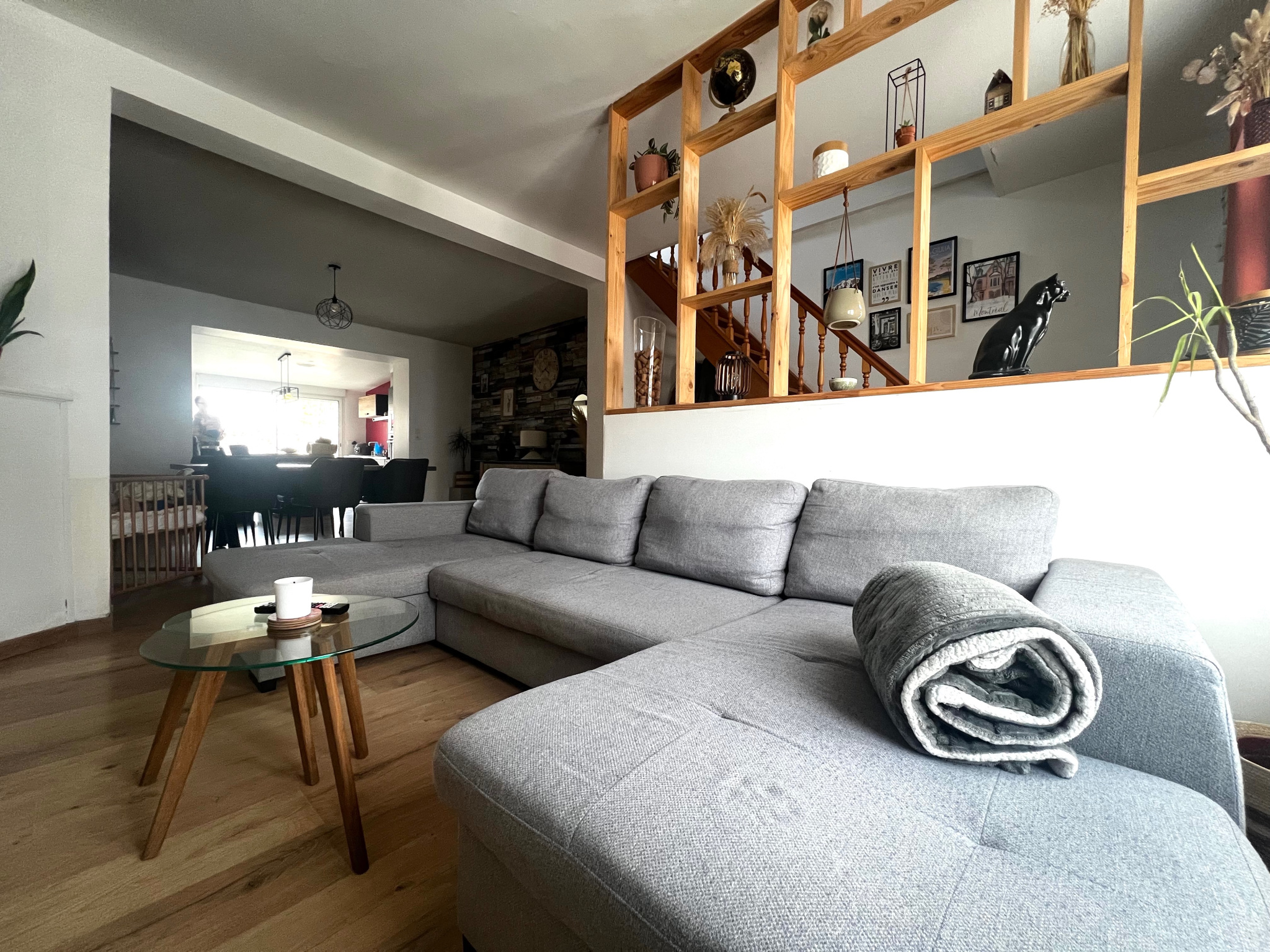 Maison de village semi individuelle d'environ 100 m2 offrant au RDC entrée, cuisine meublée et équipée avec espace repas ouverte sur salon - salle à manger, salle de douches avec WC.