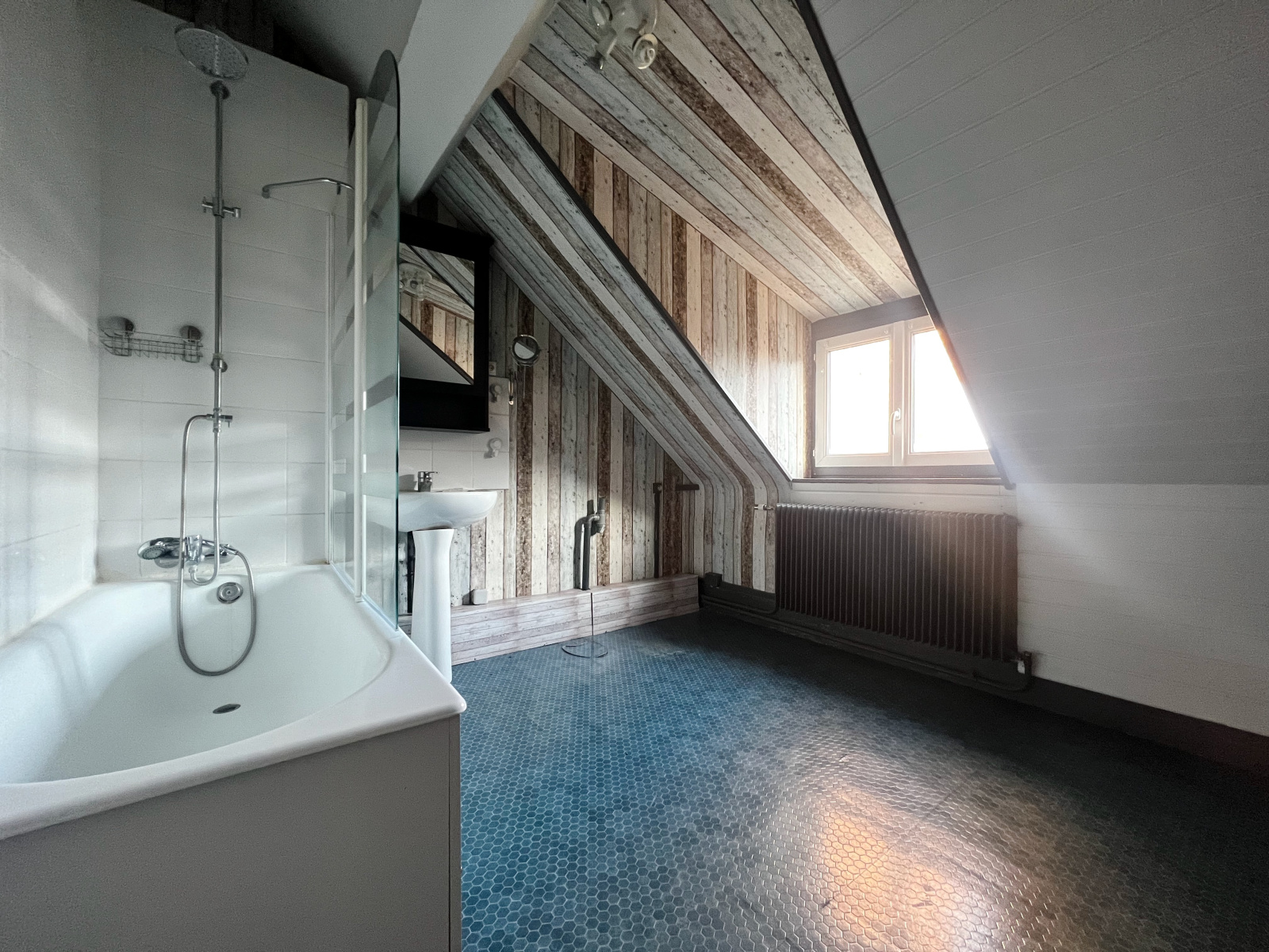 Au 1er étage, palier desservant 2 chambres, salle de bains et WC.