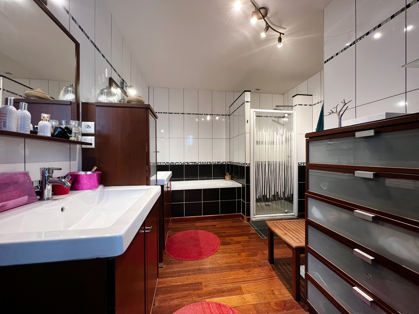A l'étage, palier desservant 3 chambres, salle de douches avec WC.
