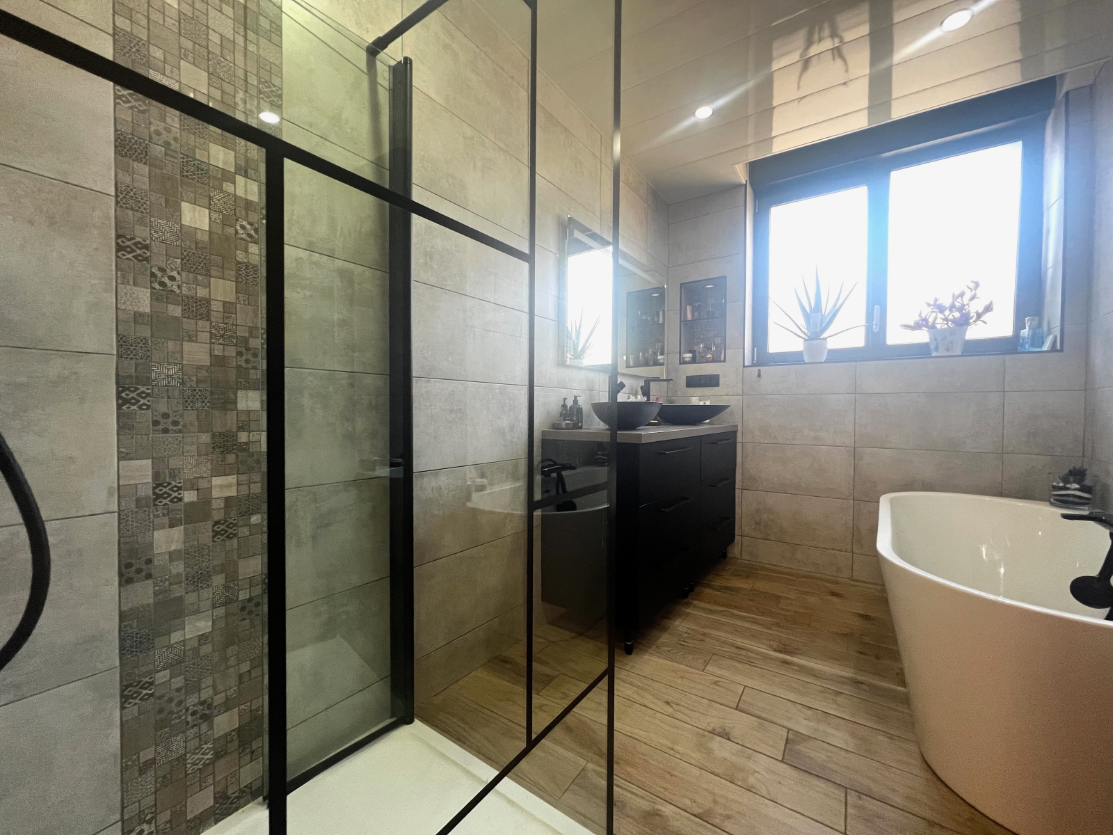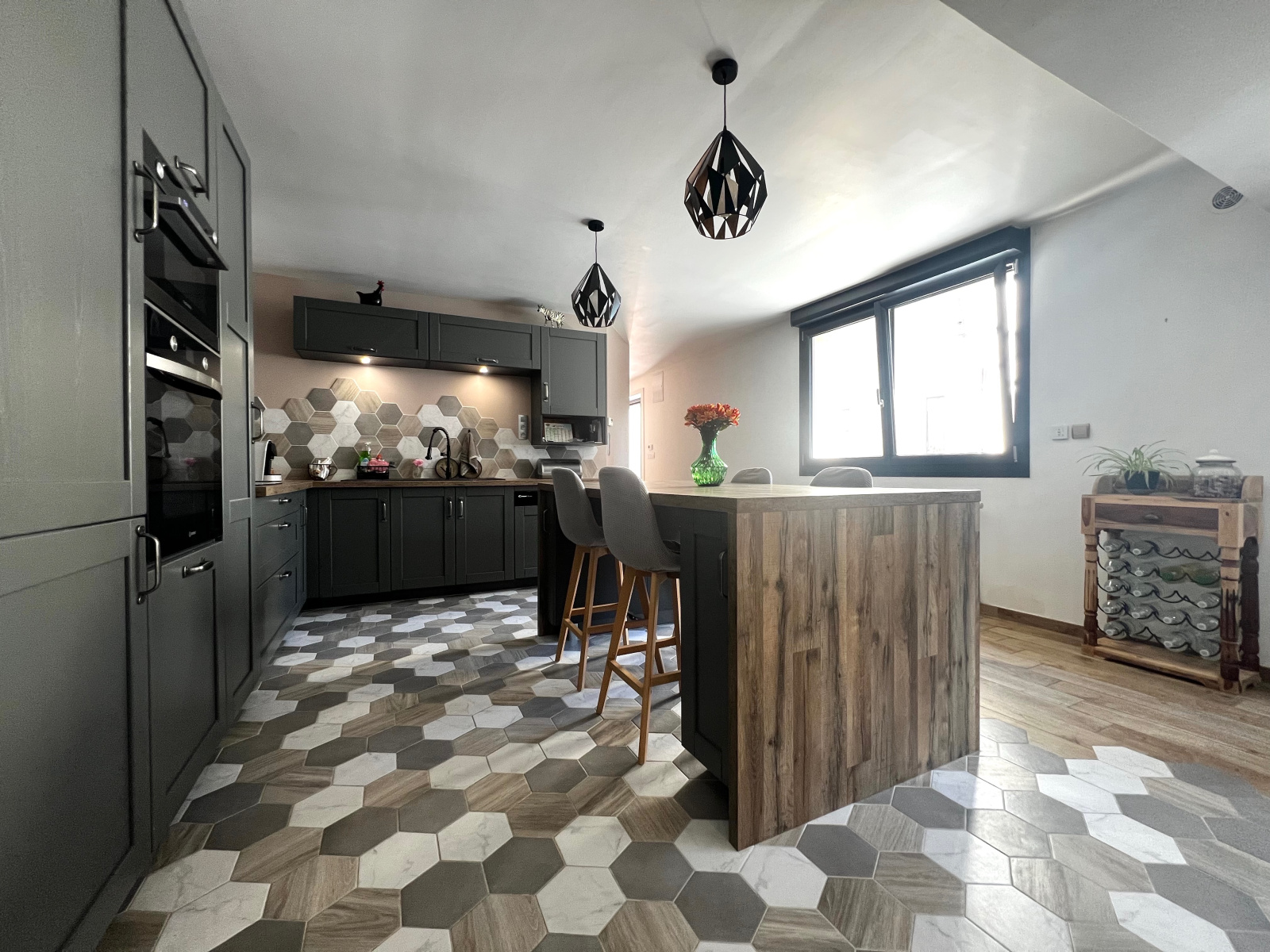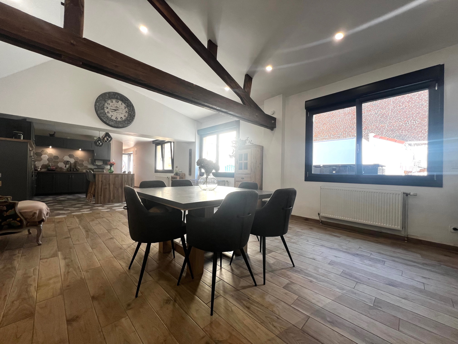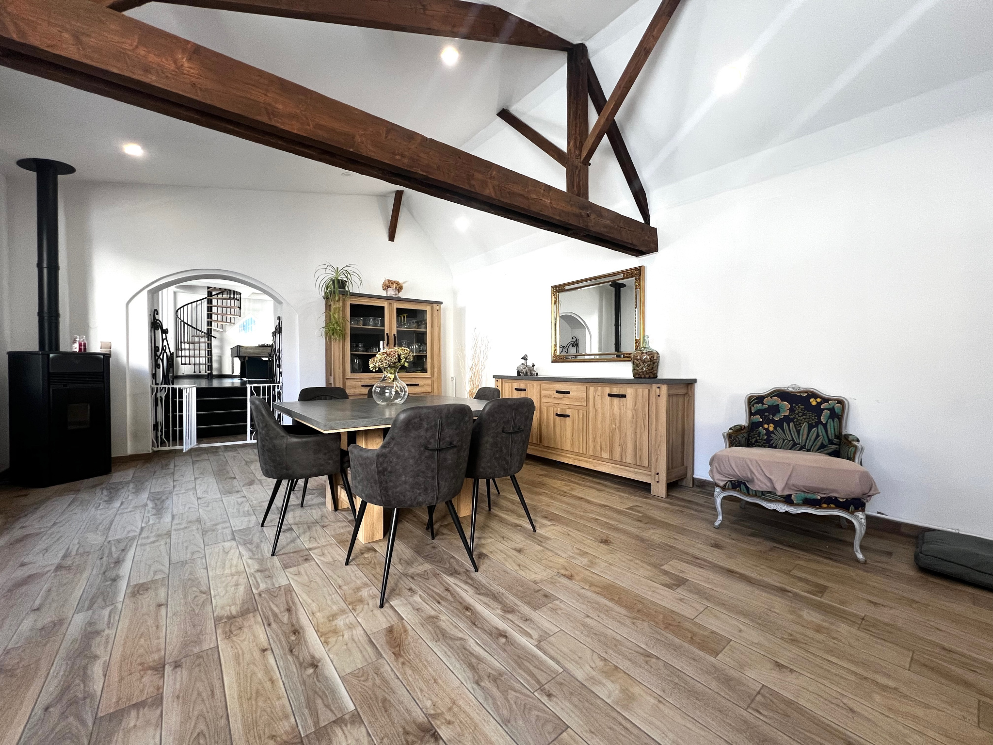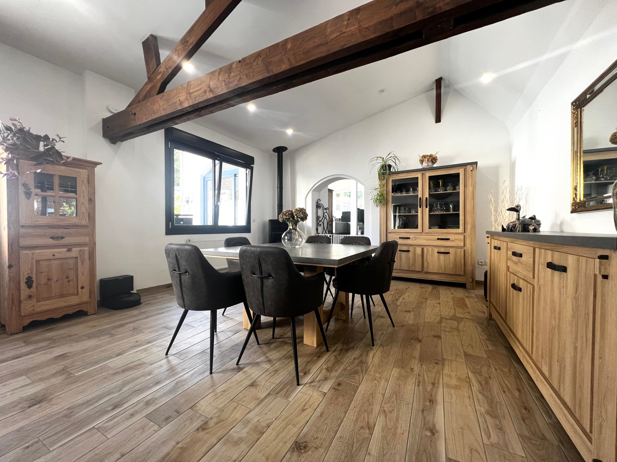 Menuiseries PVC double vitrage avec volets électriques, poêle à granulés, cheminée feu de bois, C.C. GAZ de ville...