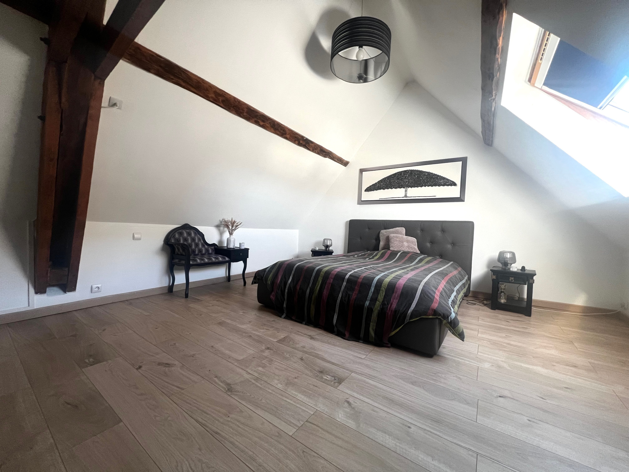 A l'étage, 4 chambres dont une avec salle de douches privative, bureau.