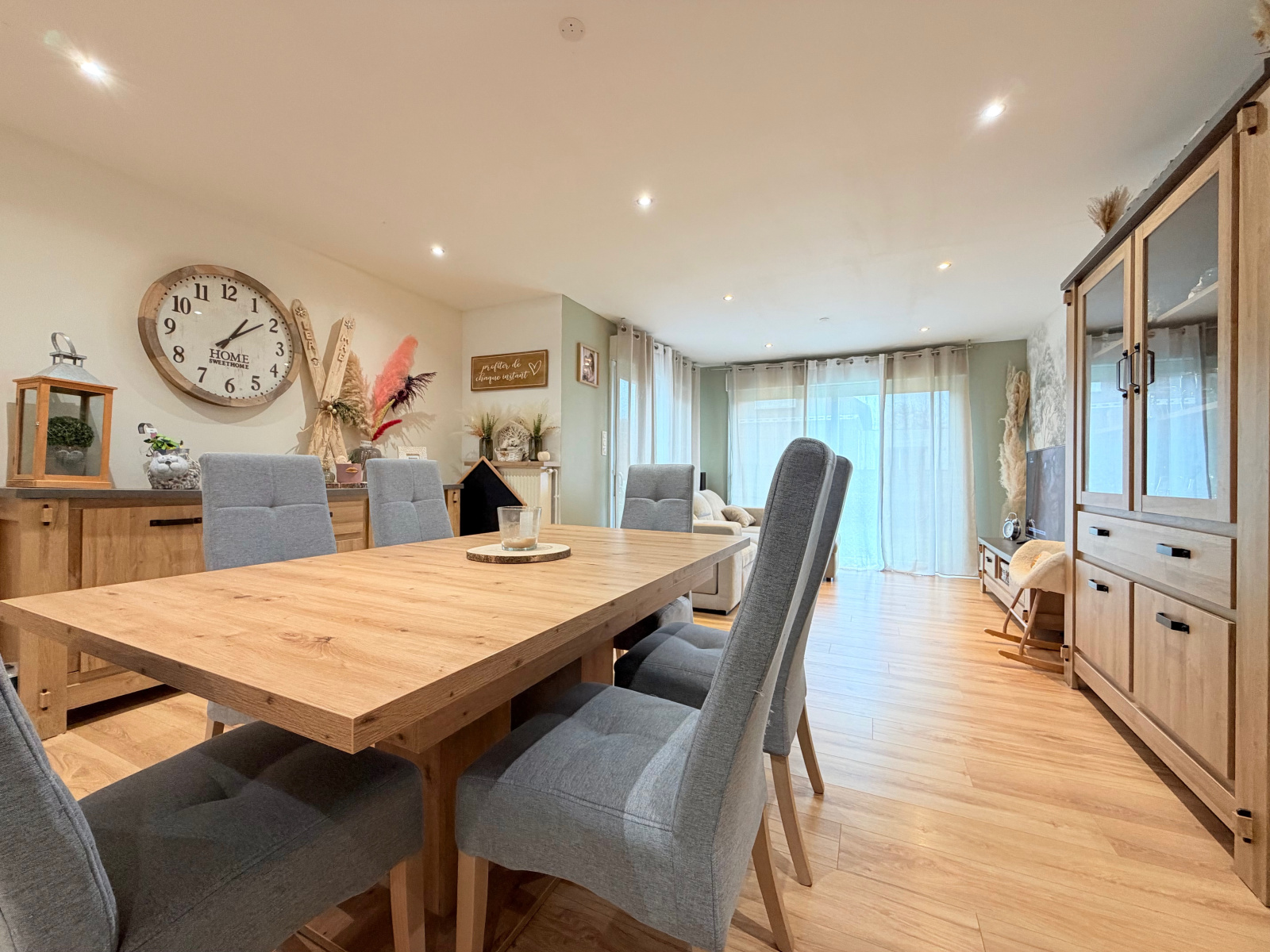Pavillon de plain pied individuel de 2007, d'environ 105 m2 habitables, offrant hall d'entrée, cuisine meublée et équipée avec espace repas ouverte sur salon - salle à manger, 3 chambres, bureau, salle de bains avec baignoire et douche, WC.