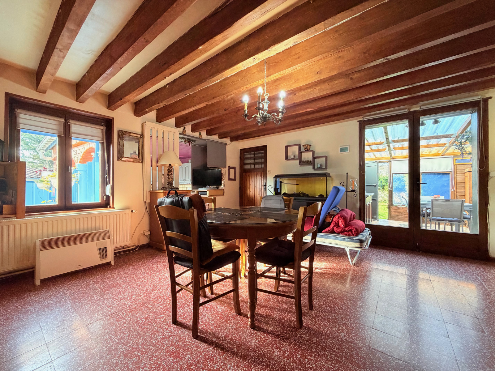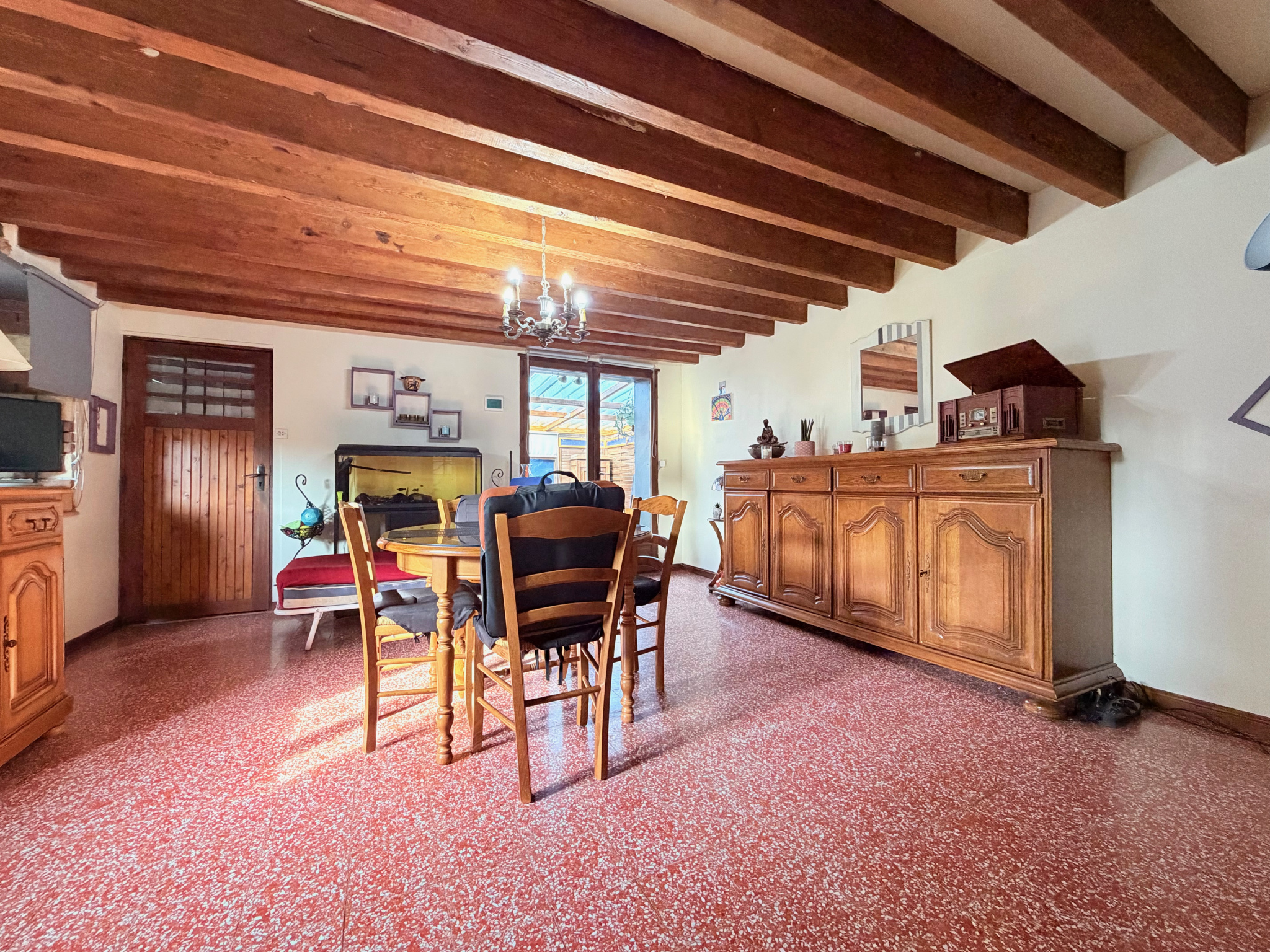 Maison de village semi individuelle d'environ 105 m2 au sol offrant au RDC entrée, cuisine meublée, salon, salle à manger, salle de bains et WC.